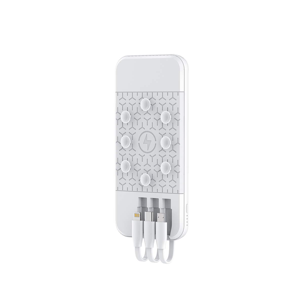 Con una capacidad de 10,000 mAh, fabricada en plástico ABS, un material duradero y resistente, está equipada con ventosas en lu parte posterior (estas ventosas permiten adherir el power bank a la superficie de tu dispositivo móvil ), con una inclusión de 3 cables de carga integrados ( micro USB, USB-C y Lightning) compatible con dispositivos Apple y android.Incluye caja de cartón individualEl Power Bank Sissa es un compañero confiable para mantener tus dispositivos móviles cargados en cualquier momento y lugar.